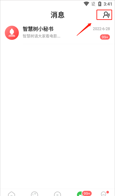 2、然后消息界面右上角点击好友按钮。