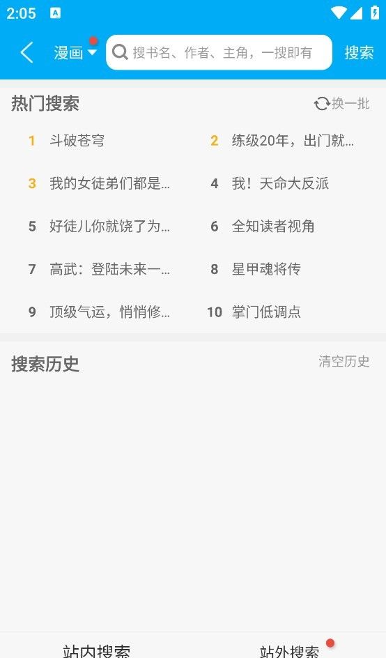 2、如果有想看的漫画,可以直接使用搜索功能哦!支持站内搜索和站外搜索。