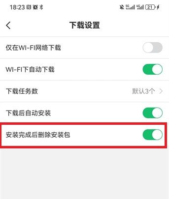 最后我们只需要打开【安装完成后删除安装包】这样就可以完成设置,然后为我们节省更多的手机空间。