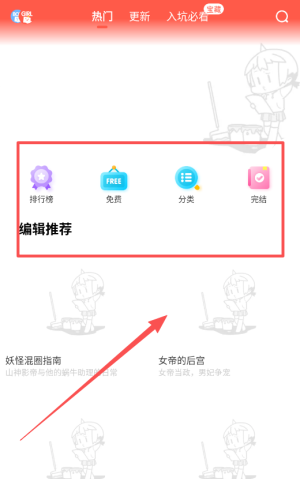 2、首页推荐会每天更新热门漫画下拉可以看到分类榜单和编辑精选帮你快速发现感兴趣的作品。