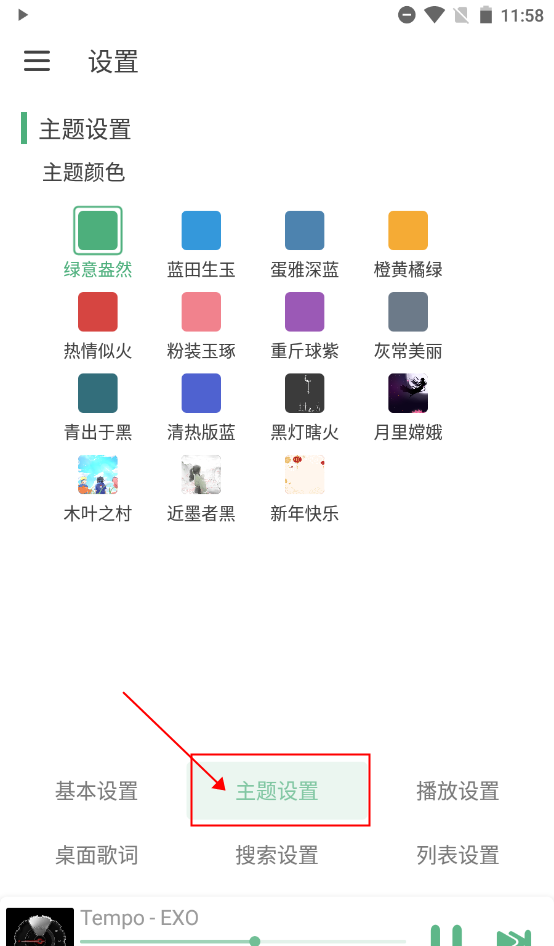 3、点击“主题设置”,选择自己喜欢的主题即可