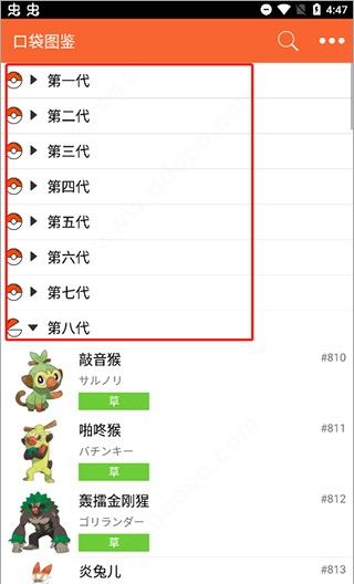 3、同时还提供了第一代到第八代的口袋图鉴;