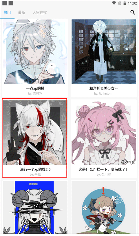 1、浏览首页中的捏画作品,选择其中一个进行自定义调色。