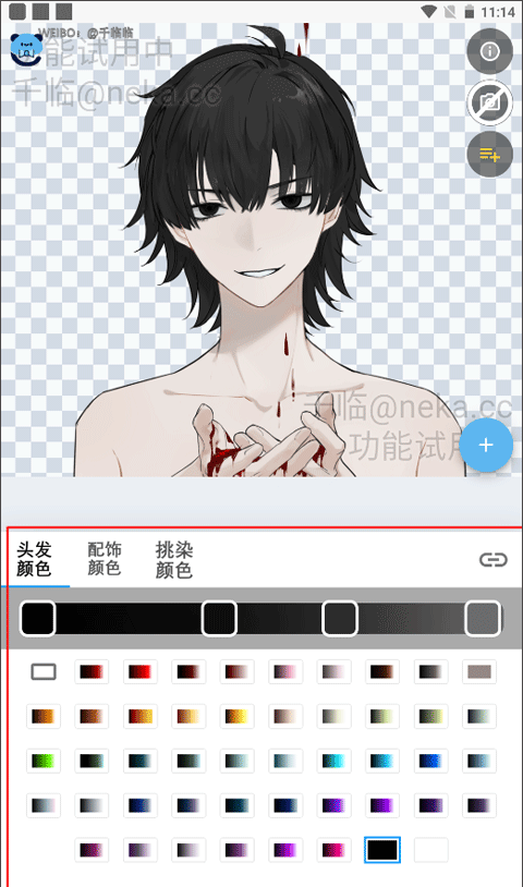 4、并且等你再次打开调色板,你会看到可以对头发、配饰、挑染进行调色了。