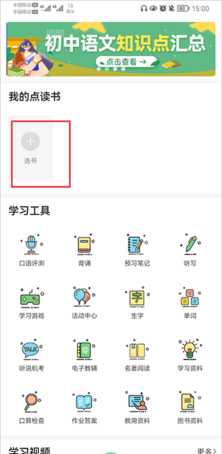 1、打开爱点读英语,在首页中点击选书