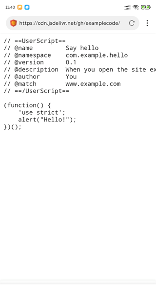 最直接的方式,你只需要在网梭浏览器中打开脚本的URL,浏览器检测出是油猴脚本会自动提示您安装,如下图所示。
