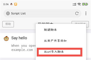 除此之外,你也可以前往网梭浏览器的脚本管理器进行安装。进入浏览器设置》浏览器脚本》点击右上角按钮“添加脚本”选择“从URL导入脚本”,然后把脚本的URL粘贴至输入框即可。在这里我们可以导入任何可以执行的JS脚本而不仅仅限于油猴脚本。