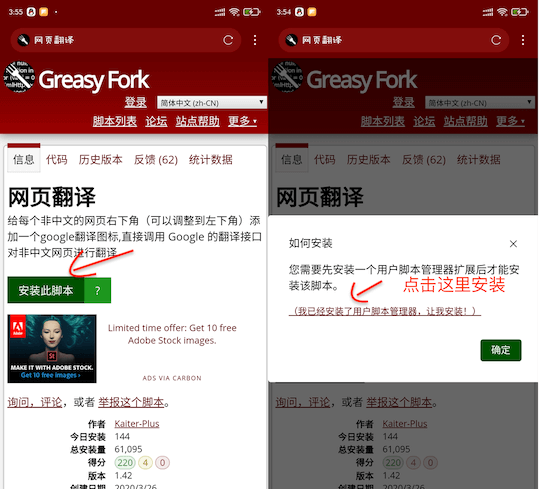 Greasy Fork是一个非常受欢迎的脚本分享站,有大量的开发者在这里分享脚本。从这个网站安装脚本也很简单,直接找到你想要的脚本安装页面,点击“安装此脚本”(第一次在这个网站安装的话,会弹出让用户安装用户脚本管理器的提示,网梭浏览器内置脚本管理器,直接安装即可)。