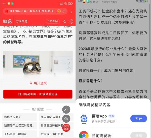 我们通过手机浏览器浏览网页的时候经常会遇到下面这样的情况,每次都需要点击”展开全文”或者”打开App”。阻断了我们当前的浏览,这很让人恼火。