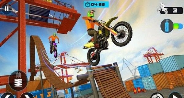 2、通过触摸屏操作,玩家可以控制自行车的加速、减速、跳跃和旋转,完成精确的特技表演;