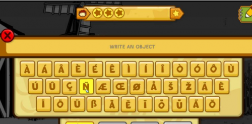 2、然后进入到我们的道具创造界面,道具创造主要是通过你输入相应的英文单词,从而游戏从其道具库中在你的该关卡界面创造出来相应的道具。输入界面玩家无须按照游戏中的乱码键盘输入,直接用你的标准键盘进行英文输入相应的英文即可,输入框下有四个选单。第一个是切换到键盘,第二个则是调出之前输入的英文;第三个对话框图标则是一个比较重要的玄霄。该选单会依据你目前输入的单词,在游戏库中对应的英文相似栏列出列表让你选择。最后一个则是确认输入。