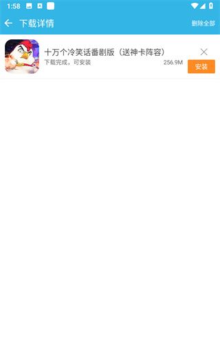 4. 全球首创实现一键下载安装大型游戏,自动适应您的设备,省去了寻找数据包的麻烦。