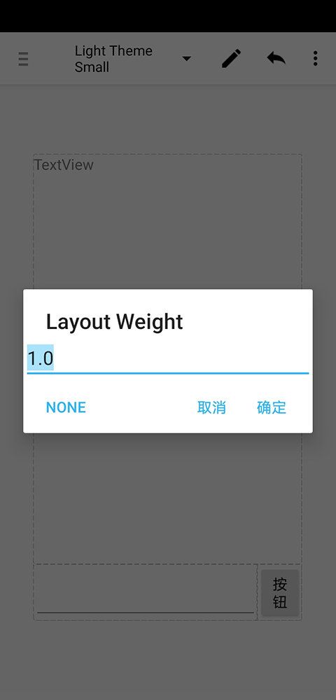 注意到下面的那个线性布局的高度其实就是输入框或者按钮的高度,不需要很大。然后屏幕剩下的高度就完全由上面的那个线性布局来填满。为了实现这一个操作,我们采用如下的办法: