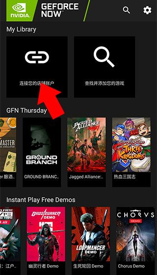 1、下载并打开geforce now软件,注册登录后来到下方界面,点击【连接您的店铺账户】按钮。