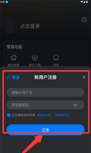 1、在新用户注册界面填写用户名与密码,完成账户注册。