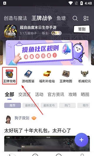 2、多维内容分类:将社区内容细分为策略、讨论和创意工作室等几个部分,以方便玩家找到有趣的话题。