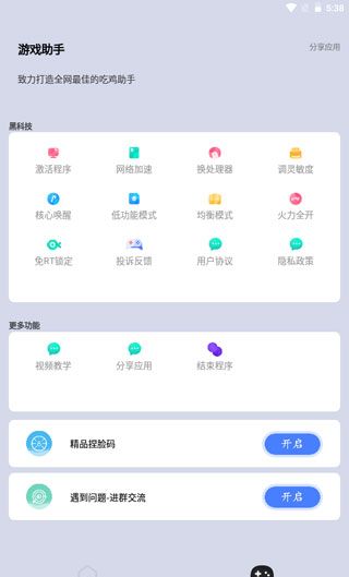 3、来到游戏助手这边有很多辅助功能,例如换处理器,调灵敏度之类的。