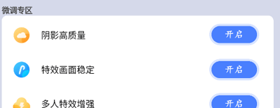 3、微调专区:可自定义开启调节阴阳高质量、特效画面稳定、多人特效增强,可根据自己的手机配置及网络进行微调。