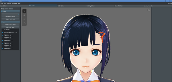 7、第二个大工程是头发的制作,毕竟发型才是纸片人的核心。在上方的选项卡中选中Hair Editor,你应该会看到这样的画面: