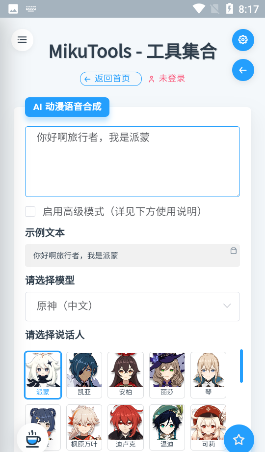 1、Mikutools崩铁语音合成为您提供高级模式,您可以轻松切换中、日、英等语言的语音效果。