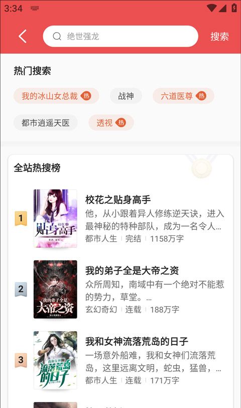 2、用户可以在搜索框内快速的输入小说的名称,搜索小说的资源