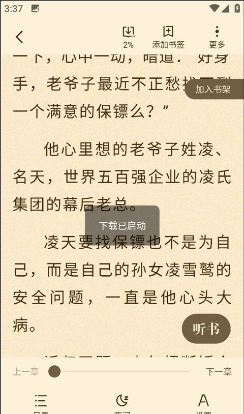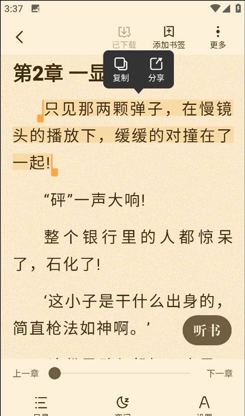 6、在阅读小说的时候发现精彩的故事内容,可以通过添加书签将章节进行标记