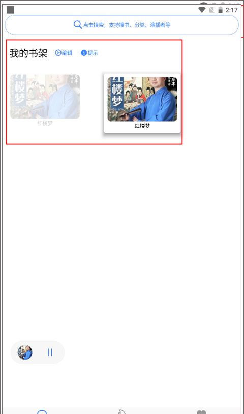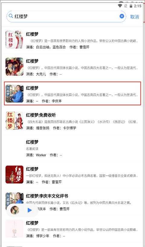 2、这时下方就会显示所有跟关键词相关的书籍音频内容,点击其中一个进行播放。