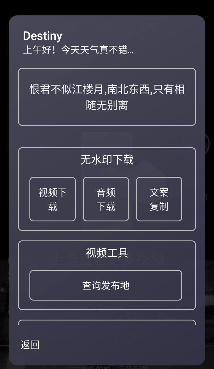 1. 无水印解析模块:该软件配备了适配最新抖音客户端的无水印解析模块,用户可以轻松去除视频水印。