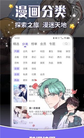 2、此应用程序可以根据用户的阅读历史推荐相应的漫画类型,并可以自由选择。