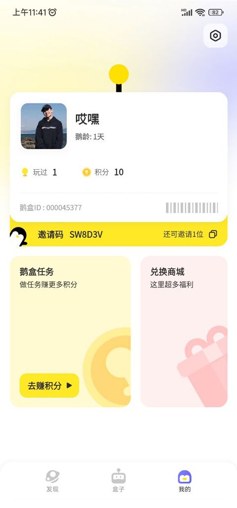 4、点开我的,还可以查看我的鹅盒id,还会免费赠送给玩家邀请码,从而让更多的游戏爱好者加入进来;