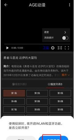 2、使用投屏时,需开启WLAN和蓝牙功能,点击立即开启按钮。