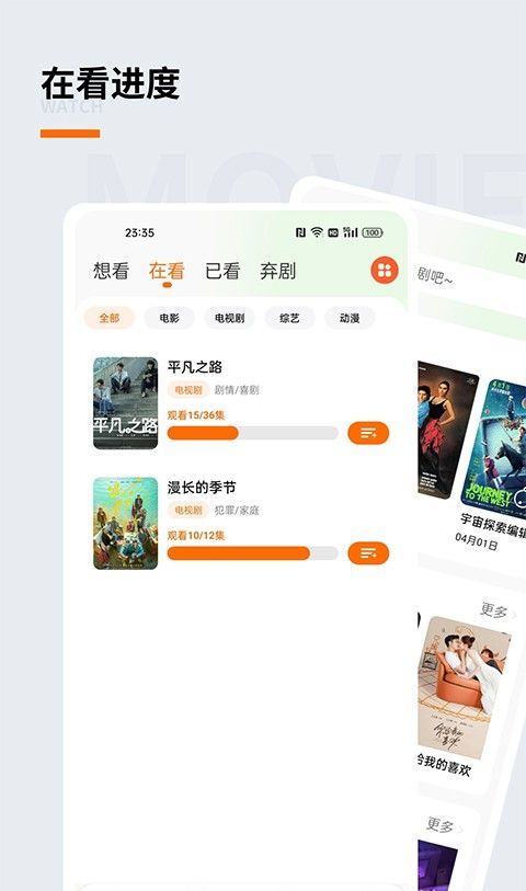 支持用户记录正在观看的电视剧或电影的进度,以便下次观看时方便跟进,用户可以对自己想看、正在看、看过的影视作品进行标记,并进行分类,方便搜索和查看。