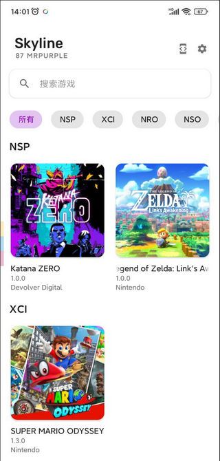 1、首先下载swtich 游戏rom资源,目前skyline模拟器支持Nsp、Xci、Nro、Nso等格式,但必须是原版1.0.0的rom,整合了升级补丁的rom无法打开。