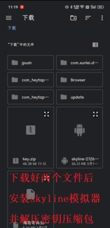 1、首先需要下载好两个文件,skyline edge模拟器和key密钥,然后安装好软件,并解压出密钥。