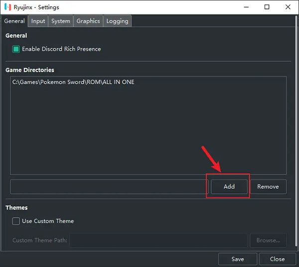 4.点 save 保存操作,之后应该便能看到导入的游戏了 。