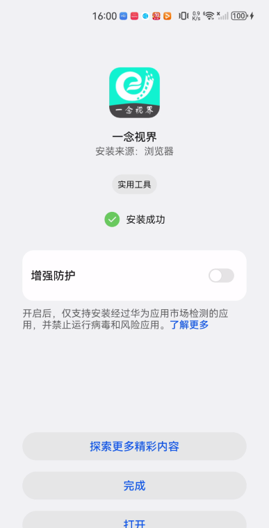 5、最后出现绿色勾号,表示“安装完成”,点击打开,就可以体验了。