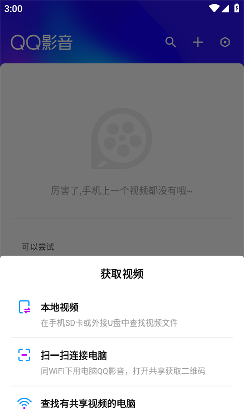 1、下载并安装qq影音app官方版,通过软件设置中的文件扫描功能,快速获取本地视频。