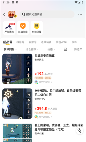 2、以光遇为例,点击光遇,进入后有海量账号供你选择,你可以进行相应的筛选。