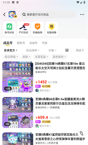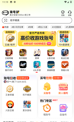 1、打开淘号玩app,你会发现超多热门的游戏账号,并且支持买好包赔。
