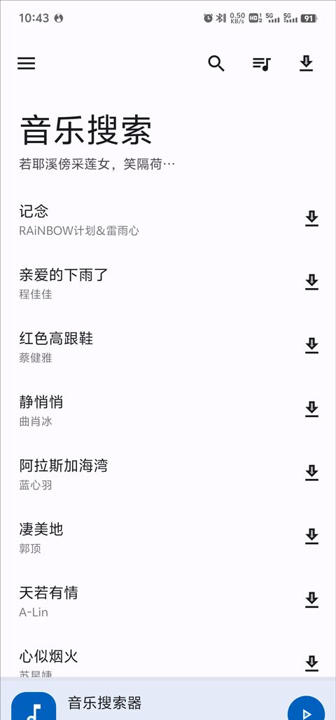 音乐搜索是一款全新的音乐收听软件,音乐资源覆盖了多种类型,全网的流行音乐都可以在这里轻松找到,资源可谓是相当的丰富,所有的音乐都可以免费下载收听,可以很好地满足用户的需求,还支持多种播放模式,可以根据自己的喜好创建播放列表。