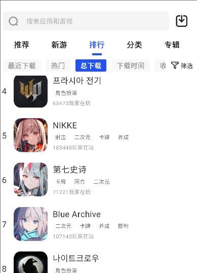 3、也可以切换到排行频道,查看最新下载、热门、总下载等各种不同的排列组合。