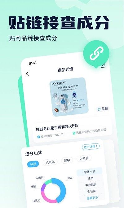 3、拥有巨大的化妆品和护肤品成分数据库,可以帮助您了解产品成分的功效、安全性和适用人群;