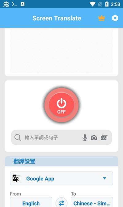 1、下载并安装屏幕翻译,完成后打开软件,点击红色OFF键。