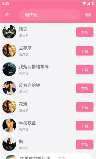 1、打开软件后想听什么音乐可以直接搜索,比如我们搜索周董的音乐,在这里全部都能找到。