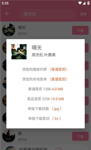 2、除了音乐的在线试听,下载当然也是没有任何问题的,支持普通音质和高品质的下载。