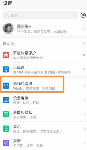 1、打开手机主菜单,选择“设置”,然后选择“无线和网络”;
