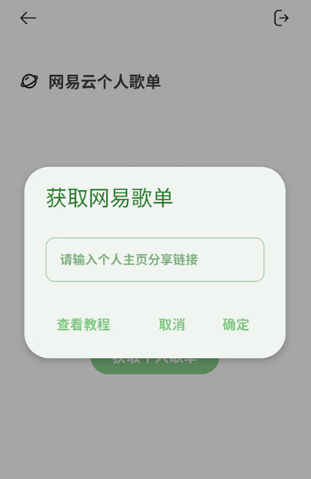 3、点击后会弹出歌单填写界面,在这里输入网易云个人主页的分享链接即可获取歌单,qq歌单同理;