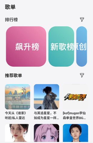 4、点击中间的歌单选项还能看到许多优质的资源,许多精彩的榜单以及歌单内容能够查看;