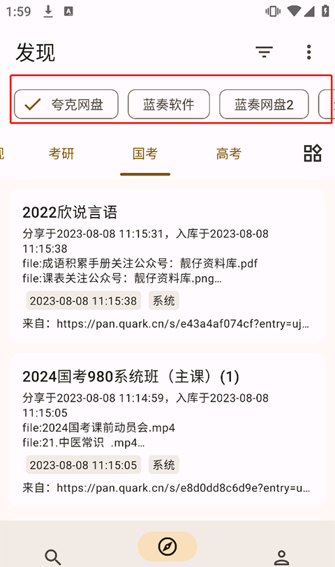 5、有需要的点击该资源后选择复制链接或直接打开资源链接