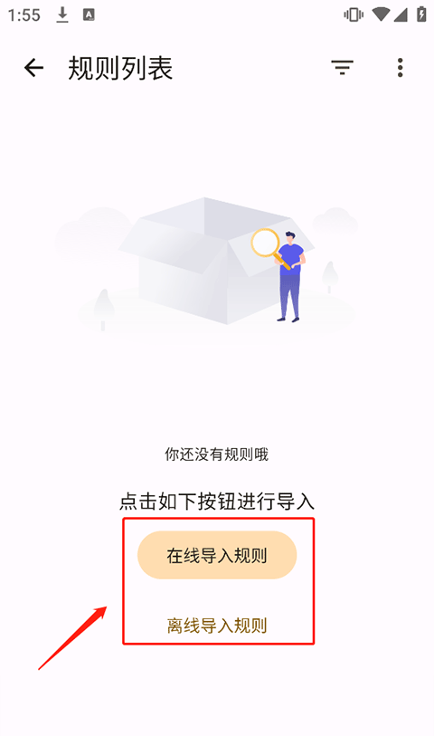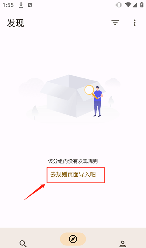 1、在app发现界面中点击去规则页面导入